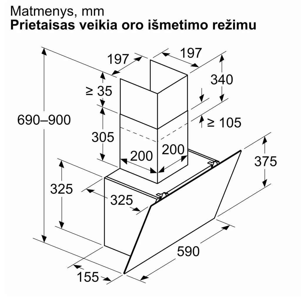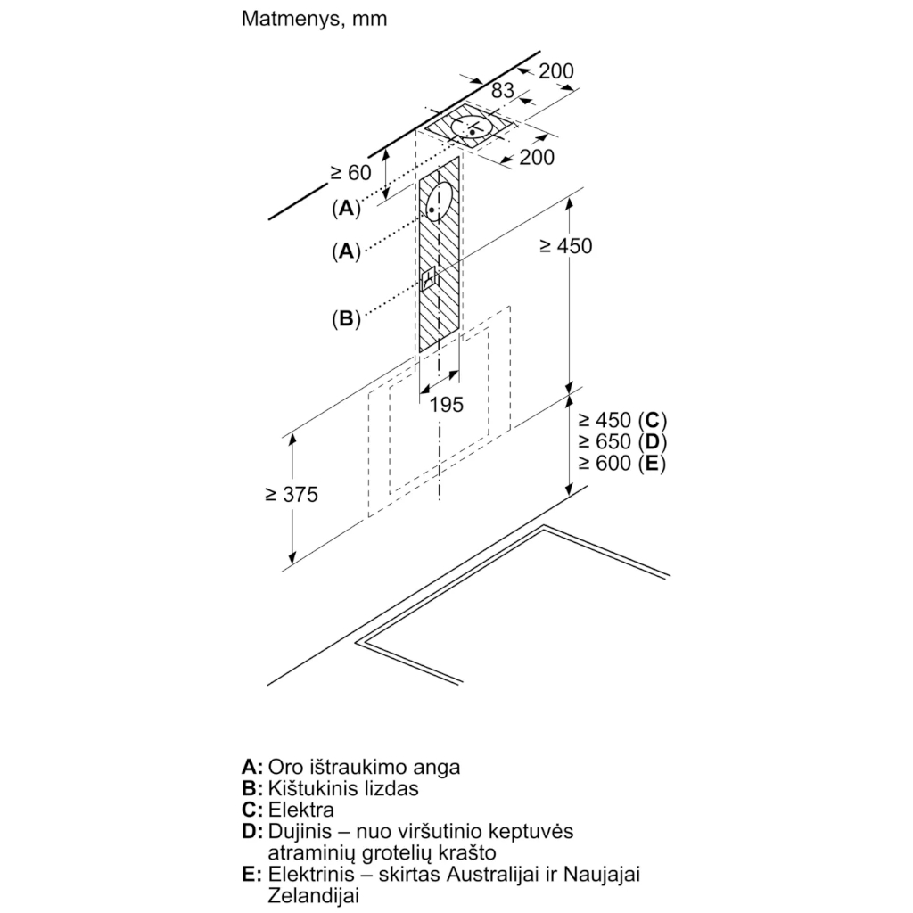 | Oro išmetimas | Į ventiliaciją arba recirkuliacija (anglies filtrai įsigyjami papildomai) |