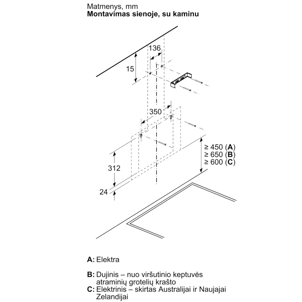 | Montavimo tipas | Montuojamas prie sienos |