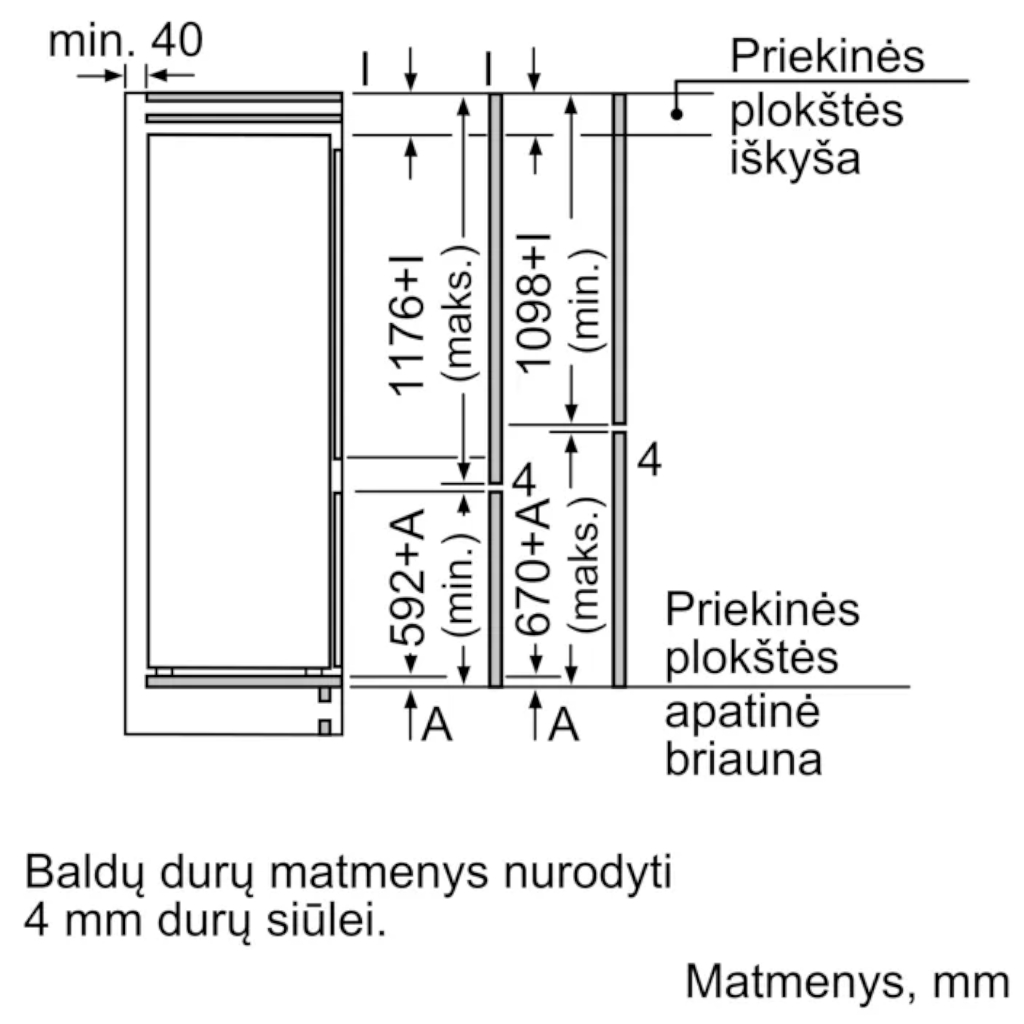 Įmontuojamas šaldytuvas su šaldikliu apačioje BOSCH KIV87NSE0, 2 serija